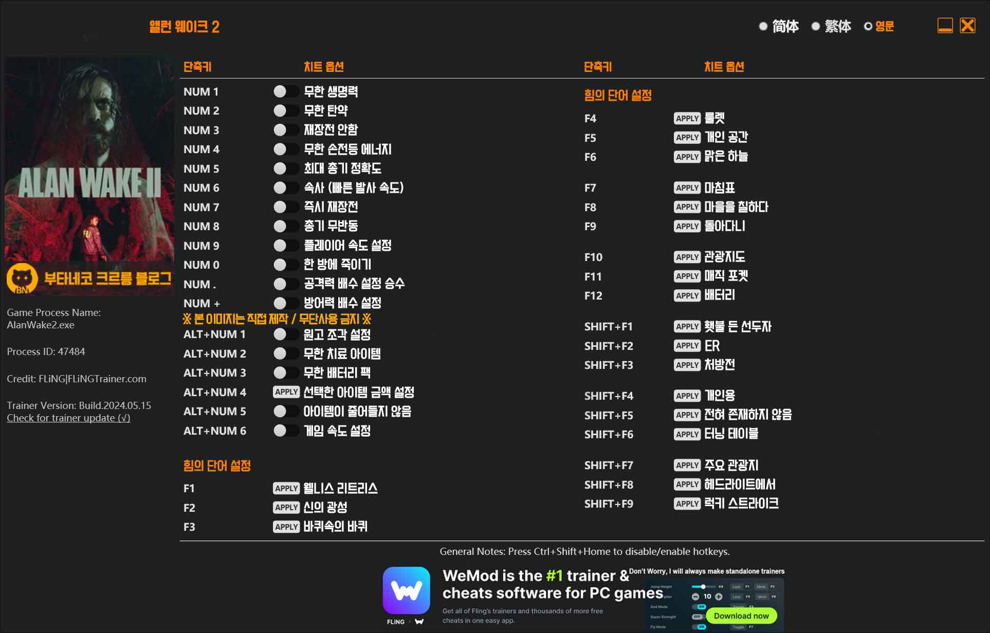 앨런 웨이크 2 / 영문 트레이너