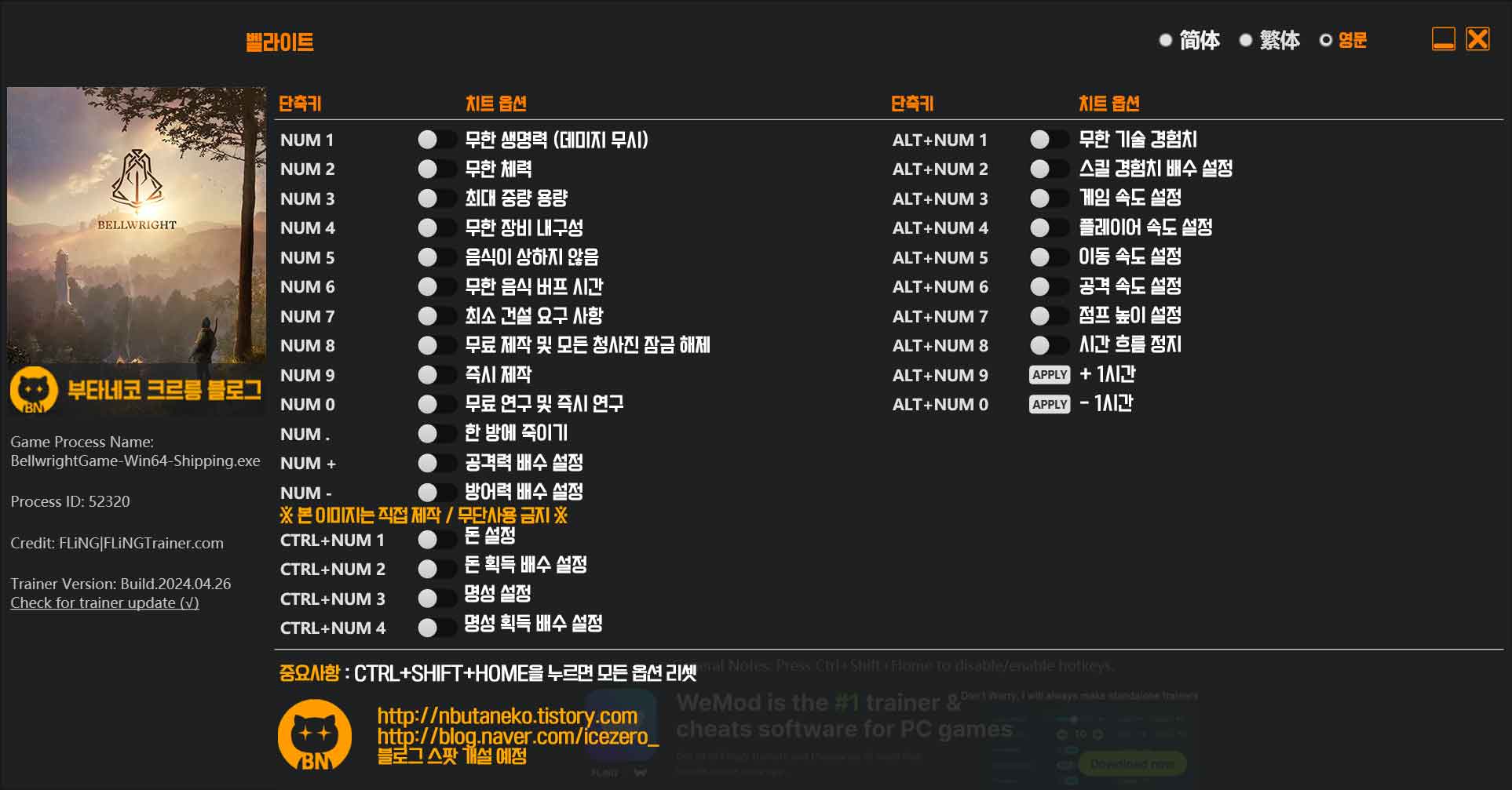 주의 사항 : 트레이너를 사용함으로 얻게되는 불이익에 대해서는 절대 책임을 지지 않습니다. 온라인, 스팀, 유플레이, 오리진, 에픽등 기타 런쳐를 사용하는 게임의 도전과제에 문제가 생길 수 있으니 이점의 유의 하시길 바랍니다. 멀티로 이용할 경우 아이디 제제를 당할 수 있으니 절대 이용하지 않길 바랍니다. 과도한 트레이너의 사용은 게임의 질을 낮추며, 재미없게 만듭니다. 사용하실때는 충분히 게임을 즐기신 다음에 사용하기를 권장합니다.